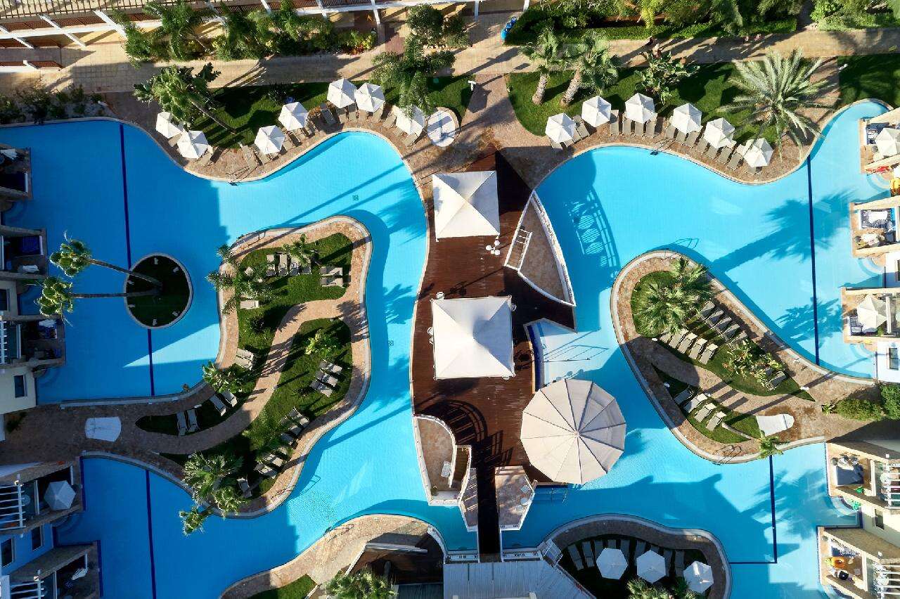 Fekvése: Ayia Napa üdülőhelyen épült, kiváló elhelyezkedésű szálloda, talán egész Ciprus legszebb strandján, a híres Nissi Bay fehérhomokos tengerpartjánál található. A háromszázhuszonhat szobás, főépületből és több kétszintes kerti villából álló, hatalmas medencerendszerrel rendelkező, a közelmúltban teljesen felújított, rendkívül népszerű, karibi hangulatú szálloda, a fehér homokos, és pálmafákkal körülvett lassan mélyülő strandtól mindössze száz méterre található. A nyüzsgő Ayia Napa központja 2,5 km-re található, amelyet könnyedén elérhet taxi vagy helyi buszjáratok segítségével. Ha szeretné megtapasztalni a ciprusi vendégszeretetet és élvezni a Nissi Beach közelségét, foglaljon most!