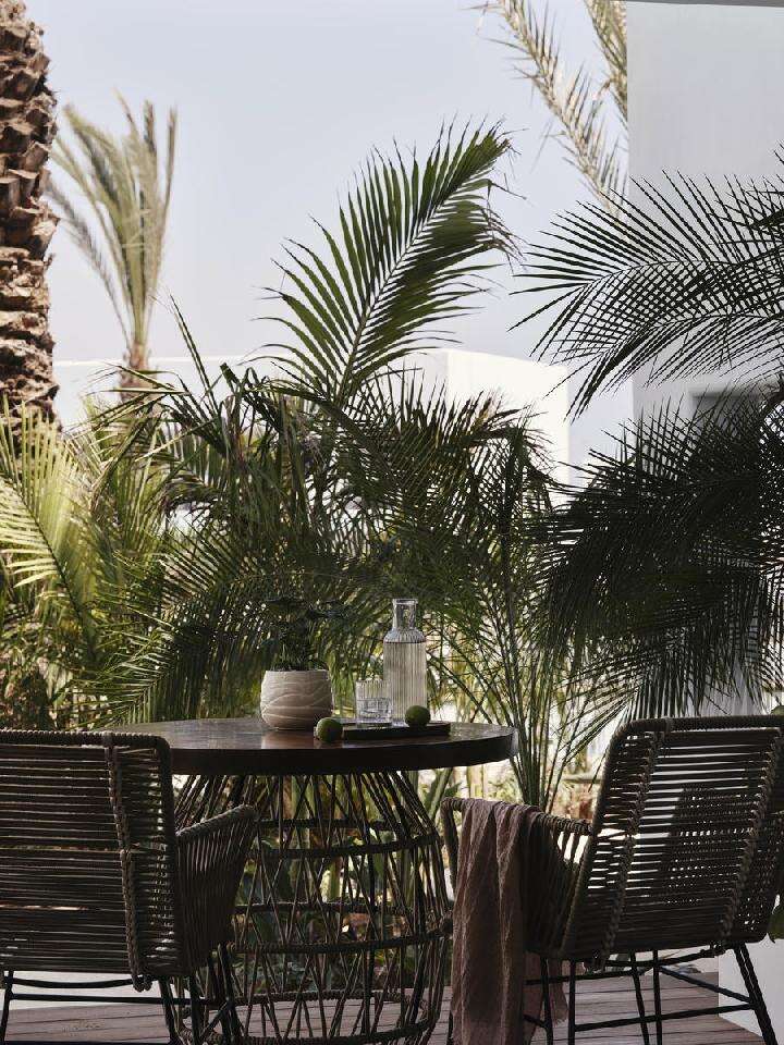 széles), kanapéval, ágyvégi paddal és tágas fürdőszobával rendelkezik. A privát kerttel körülvett terasz étkezőrésszel tökéletes helyszín a zavartalan pihenéshez.