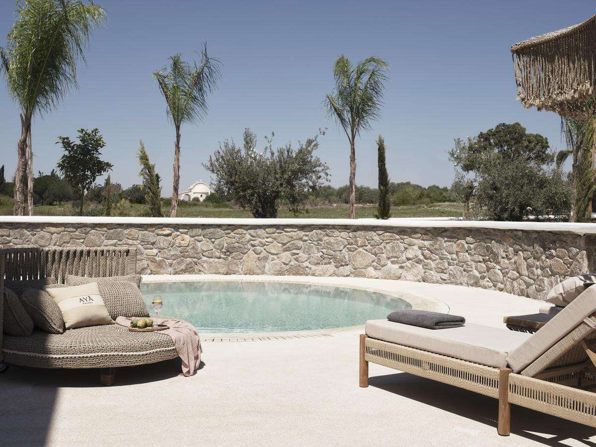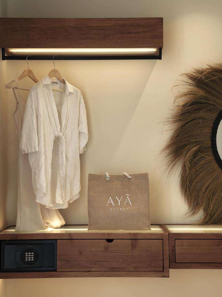 Fekvése: az Aya Resort egy vadonatúj, csak felnőtteket (20 éves kor felett) fogadó luxus szálláshely, Ayia Napa központjától kb 8 km-re, a Nissi Bay és a Makrinossos Bay strandoktól kb. 3m-re, az Olympic Lagoon Hotellel szemközt található. Ez a kiemelkedően elegáns resort a kortárs mediterrán vendéglátás új színfoltja, ahol a nyugodt exkluzivitás és a sziget ihlette design áll a középpontban. Az Aya Resort összesen 48 lakosztállyal rendelkezik, melyeket a modern kényelem és a visszafogott elegancia jellemez. A kínálatban szerepelnek víz fölé épített bungalók, saját medencés kerti lakosztályok, valamint olyan egységek is, amelyek közvetlen kapcsolattal rendelkeznek a resort 3 000 m²-es főmedencéjéhez. Az Aya Resort kifejezetten azoknak az utazóknak készült, akik az élettel teli hangulat és a nyugodt elvonulás tökéletes egyensúlyát keresik. Az építészeti koncepciót a MITA & Associates Architects, a belső tereket az AT Design Studio jegyzi, Mykonos és Indonézia inspirációival. A természetes színpaletta, a texturált anyagok, a letisztult vonalak és a buja trópusi kertek laza, mégis kifinomult atmoszférát teremtenek, kézzel készített dekorációs elemekkel – például makramé napernyőkkel.
