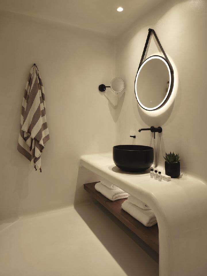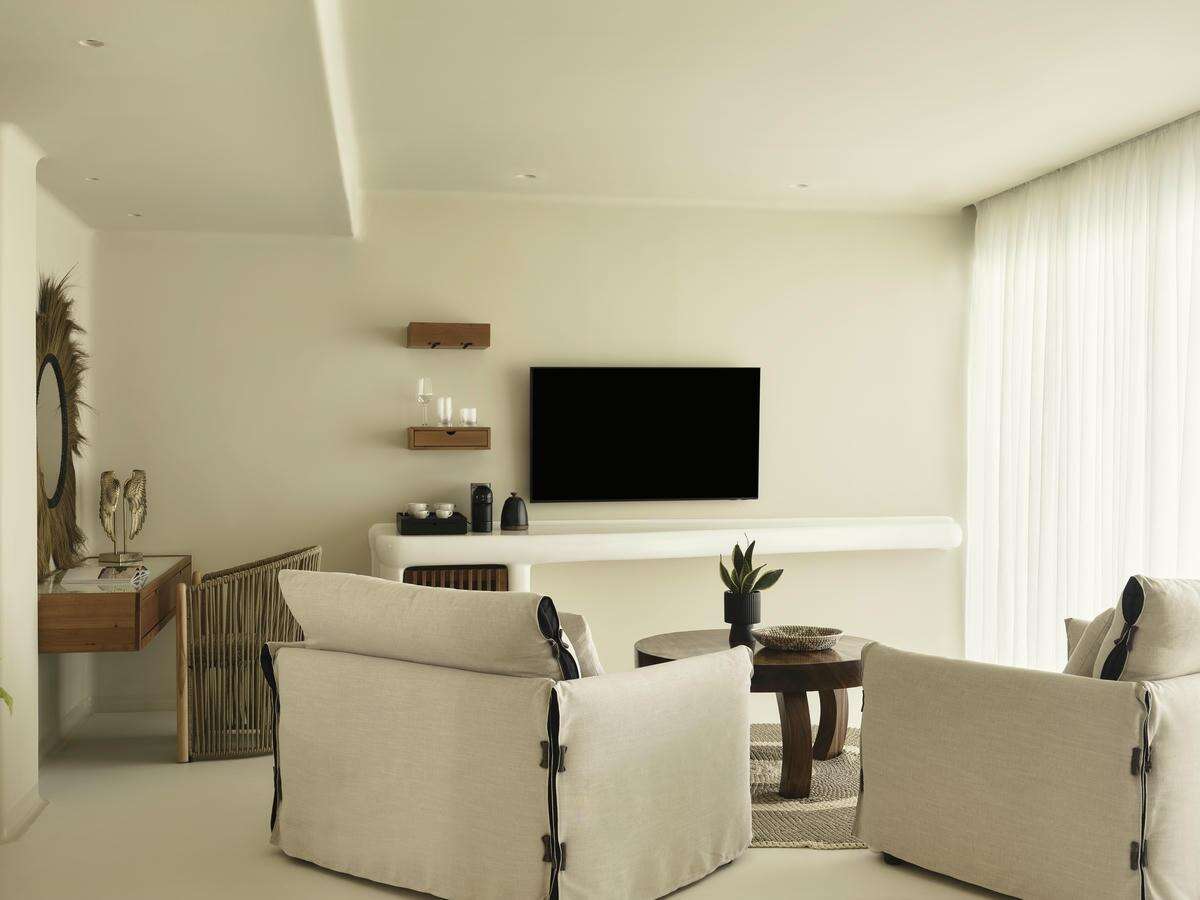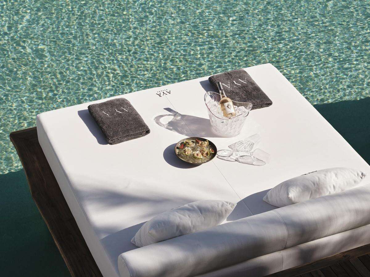 széles), kanapét, ágyvégi padot és dupla mosdós fürdőszobát kínál. Az automatizált szobavezérlés maximális komfortot biztosít, míg a közvetlen medencekapcsolat és a teraszon elhelyezett étkezőgarnitúra ideális a teljes ellazuláshoz.