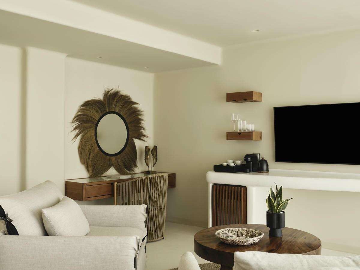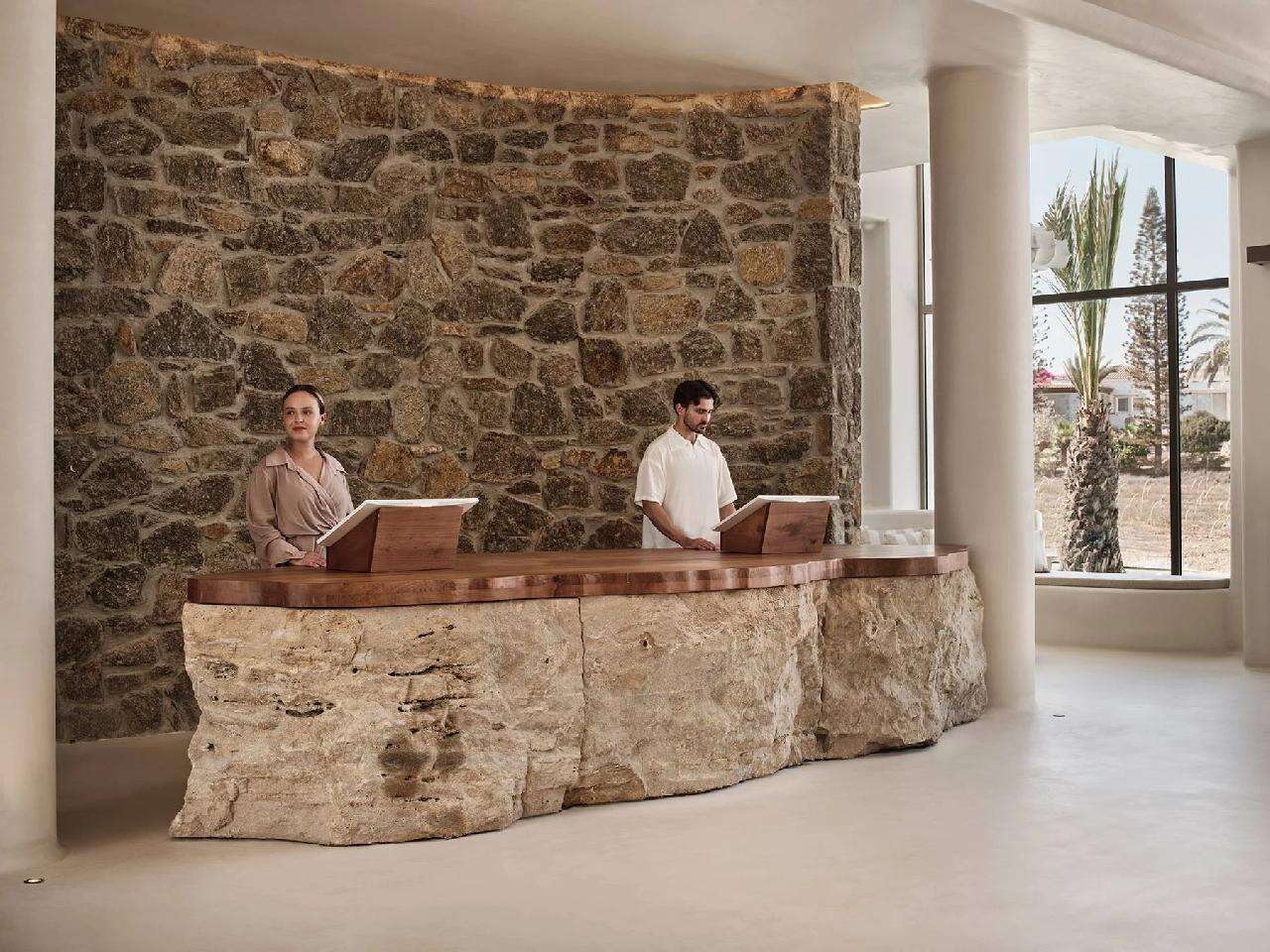 Szolgáltatások: recepció, étterem, bár, szobaszerviz, mosoda, WiFi internetezési lehetőség (a recepció környékén ingyenes), rendezvényszervezés (pl. esküvő), ingyenes buszjárat a Nissi vagy a Makronissos strandokra. A gasztronómiai élmények középpontjában a Mãnna Restaurant áll, amely helyi ízekre és szezonális alapanyagokra épít, míg a medence melletti Sushi Bar friss fogásokat és signature koktélokat kínál.