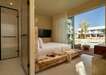 Junior Swim-Up lakosztály (földszint): kortárs elegancia és közvetlen medencekapcsolat jellemzi ezt a lakosztályt. Az egyterű kialakítás king-size ágyat (1,80 m