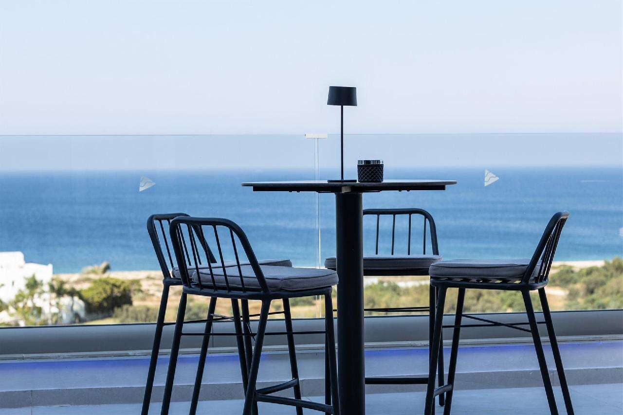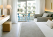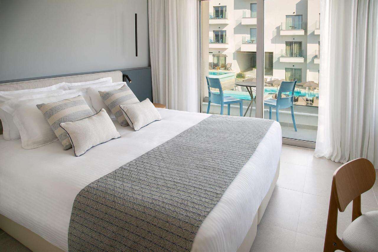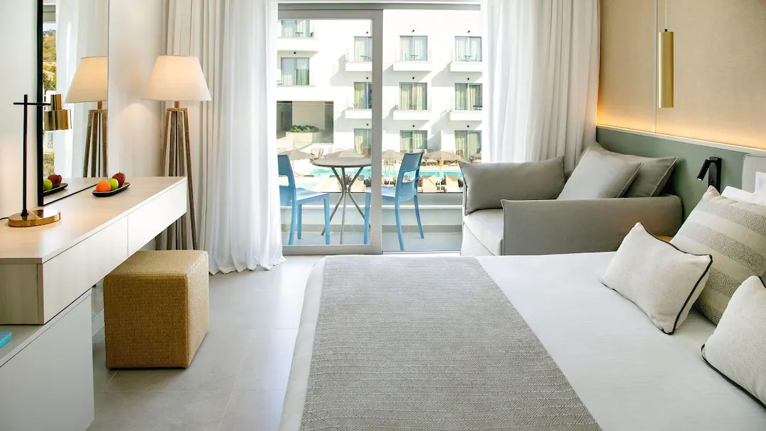 Szobák: Az Atlantica Aqua Blue Hotel elegánsan berendezett szobákat kínál, amelyek minden igényt kielégítenek. A szobák stílusa modern, letisztult vonalvezetésű, és a színek harmóniája tökéletesen tükrözi a tengerparti hangulatot. Minden standard szoba egy hálószobás (~22m2), fürdőszobás, légkondicionálóval, hajszárítóval, fürdőköpennyel és papuccsal, síkképernyős tv-vel, telefonnal, vízforralóval, és minihűtővel felszerelt. A szuperior szobák hasonlóan berendezettek és felszereltek azonban több kényelmet, valamint exkluzívabb élményt nyújtanak, nagyobb alapterületűek (26m2) a szobákban egy extra kanapé(pótágy) található. Lehetőség van szuperior Swim Up szoba (max.2főre) foglalására is, mely szobák közvetlen medencekapcsolattal rendelkeznek az erkélyről. A családi szobák, kifejezetten a családok igényeire szabva, nagyobb alapterületűek (~28 m2), és külön szobát is kínálnak a gyerekek számára mely tolóajtóval (paravánfallal) van elválasztva a szülők szobájától. Minden szobához erkély vagy terasz tartozik, utcai, medencére vagy tengerre néző kilátással. Széfbérlés és minibárfogyasztás térítés ellenében.