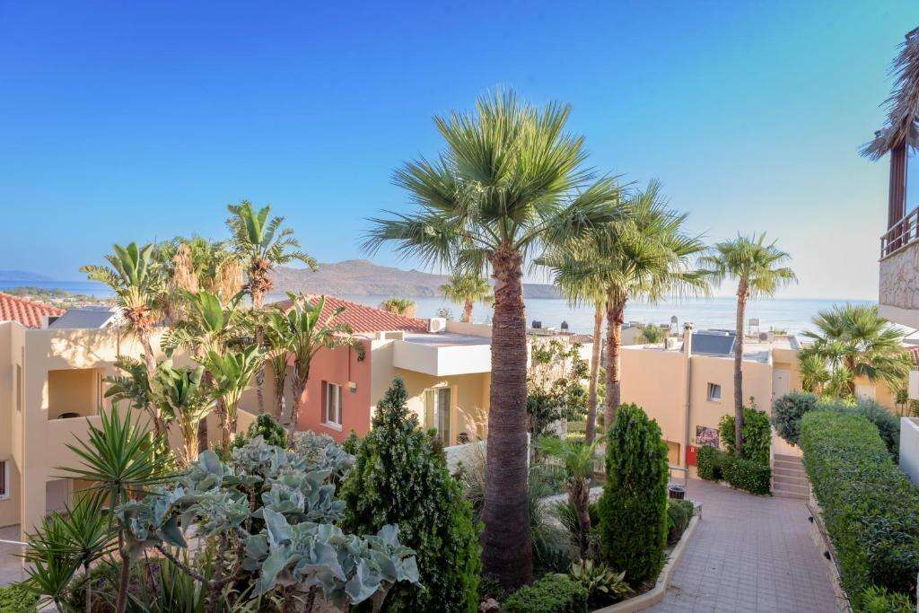 A szálloda Agia Marina domboldalán helyezkedik el, mindössze kb. 150 méterre a homokos strandtól, így gyönyörű kilátást nyújt a Krétai-tengerre és a közeli Theodorou-szigetre. A környéken éttermek, bárok, üzletek és éjszakai szórakozóhelyek találhatók, így a vendégek könnyen elérhetik a helyi szolgáltatásokat és programokat. A történelmi Hania városa körülbelül 7–9 km-re található, a szálloda pedig remek kiindulópont a környék felfedezéséhez.