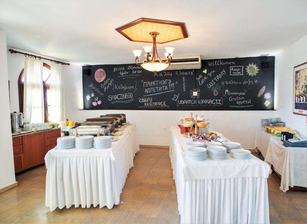 A hotel étterme büférendszerben kínál reggelit és vacsorát, melyek során görög és nemzetközi fogások közül választhatnak a vendégek. A szállodában medence melletti snack-bár és lobby bár is működik, ahol frissítő italok, koktélok és könnyű ételek fogyaszthatók. A hotel foglalható reggelis, félpanziós vagy egyes esetekben all inclusive ellátással is.