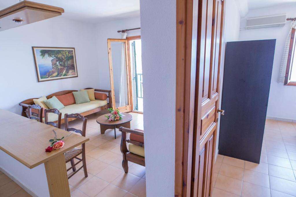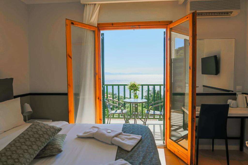 A szálloda mintegy 100–145 légkondicionált szobával és apartmannal rendelkezik. A világos, kényelmesen berendezett szobák többsége erkéllyel vagy terasszal rendelkezik, ahonnan kertre, a környező dombokra vagy a Jón-tengerre nyílik kilátás. A szobák felszereltségéhez tartozik többek között saját fürdőszoba, hajszárító, televízió, hűtőszekrény vagy minibár, telefon, széf, valamint Wi-Fi-hozzáférés. A kínálatban kétágyas szobák és tágasabb apartmanok is megtalálhatók, amelyek családok számára is megfelelő elhelyezést biztosítanak.