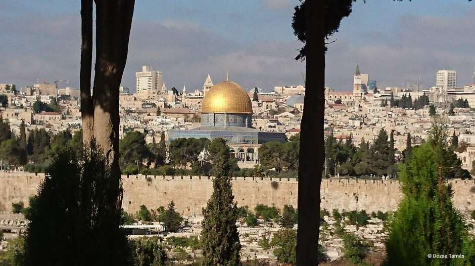 Reggeli a szállodában, majd egész napos program Jeruzsálem óvárosában. A program az Olajfák hegyén kezdődik, ahonnan a délelőtti nap fényében csodás kilátás tárul a városfalra és a felette látható Sziklamecset híres aranykupolájára. Az Olajfák hegyén a Dominus flevit kápolna, a Nemzetek temploma és a bibliai Getszemáni kert felkeresése. Délután irány az óváros, ahol a Siratófal, a Via Dolorosa és Szent Sír temploma következik. A Templom hegy (ahol az Al Aksa és a Sziklamecset található) felkeresése az aktuális politikai helyzettől függ. A nap végén a Sion-helyen található misztikus erővel bíró Dávid király sírjának megtekintése, valamint a szintén itt található utolsó vacsora terme és az Elszenderülés temploma következik. Vacsora és szállás Jeruzsálemben.