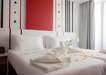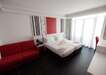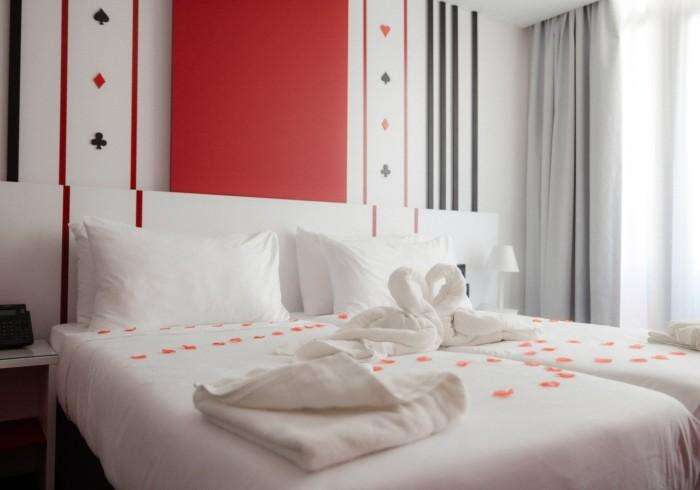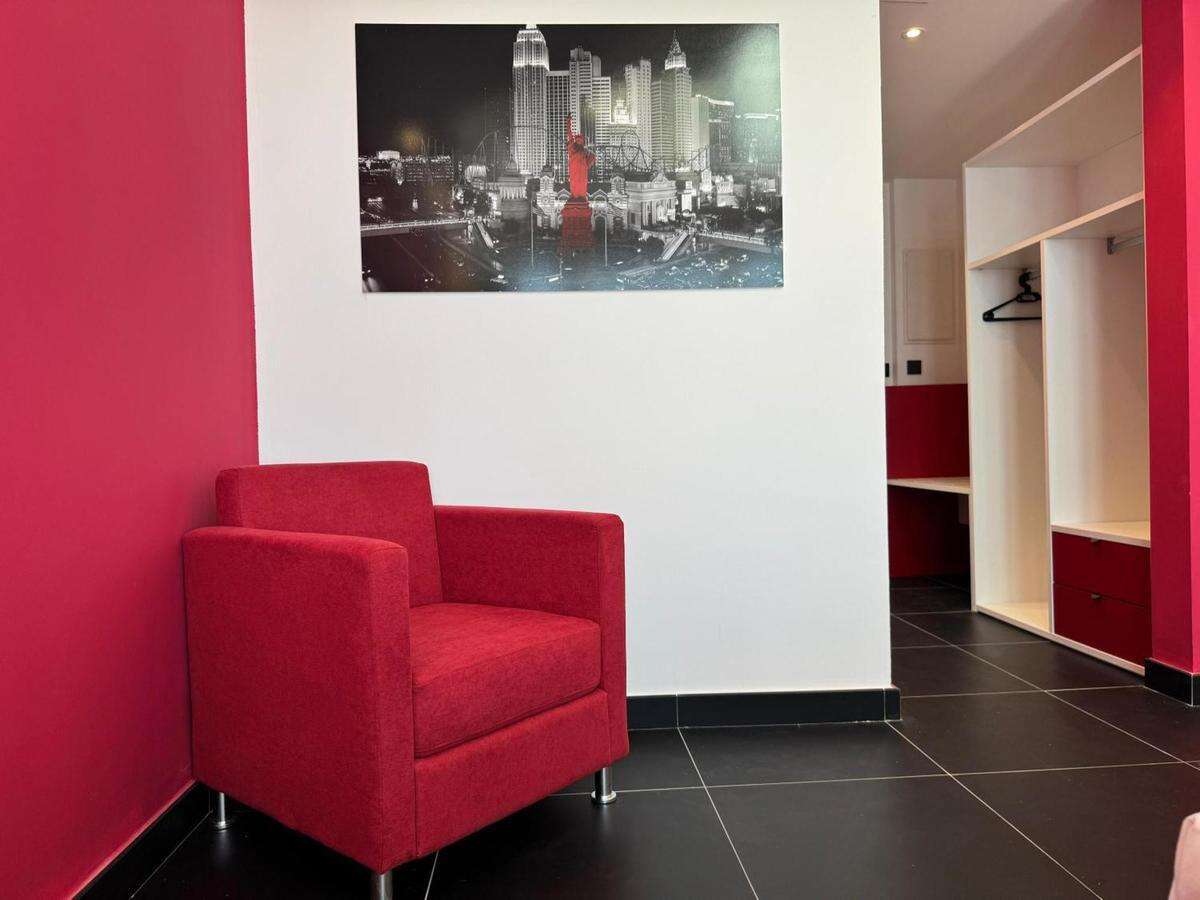 Kétágyas standard szoba: élénk színek, king-size ágy, pihenősarok piros fotelekkel és LED világítással. mindössze pár lépésre az éjszakai élettől. Max 3 fő befogadására alkalmas.