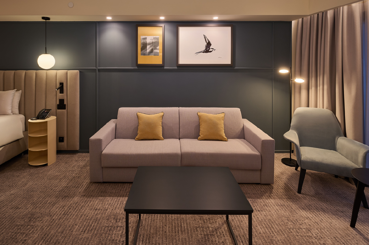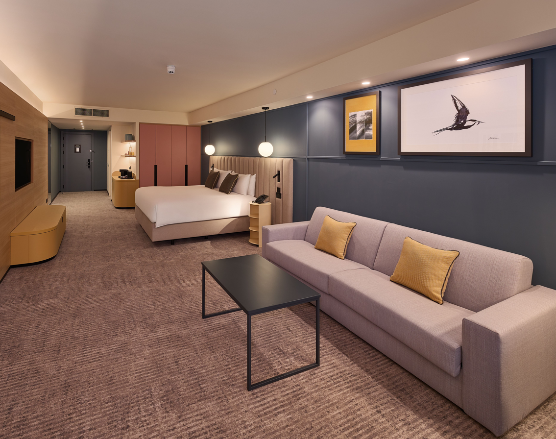 A tágasabb elrendezésű 41-46m²-es szobatípus is 1 hálószobás és erkéllyel rendelkezik. A lakosztály felszereltsége többek között légkondicionálás, műholdas TV, ingyenes WiFi, kapszulás kávéfőző, vízforraló és széf. Maximum 4 fő részére foglalható.