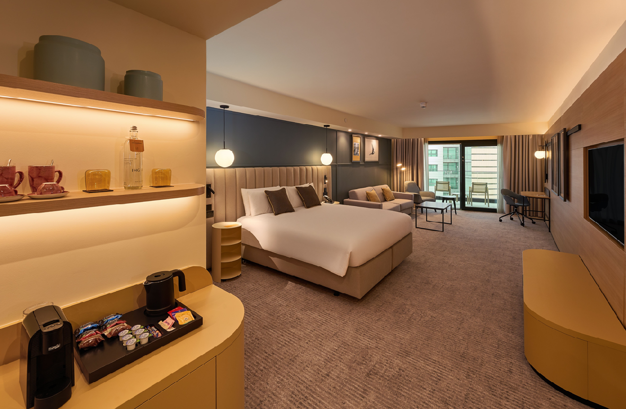 A kényelmes kb 35-40m²-es, modern kialakítású szoba erkéllyel, amely légkondicionálással, műholdas TV-vel, kapszulás kávéfőzővel, vízforralóval és ingyenes WiFi kapcsolattal rendelkezik. A szobákban széf található, a minibár felár ellenében használható. Maximum 4 fő részére foglalható.